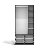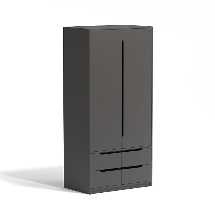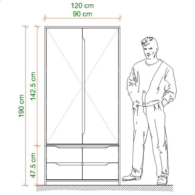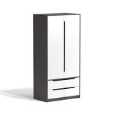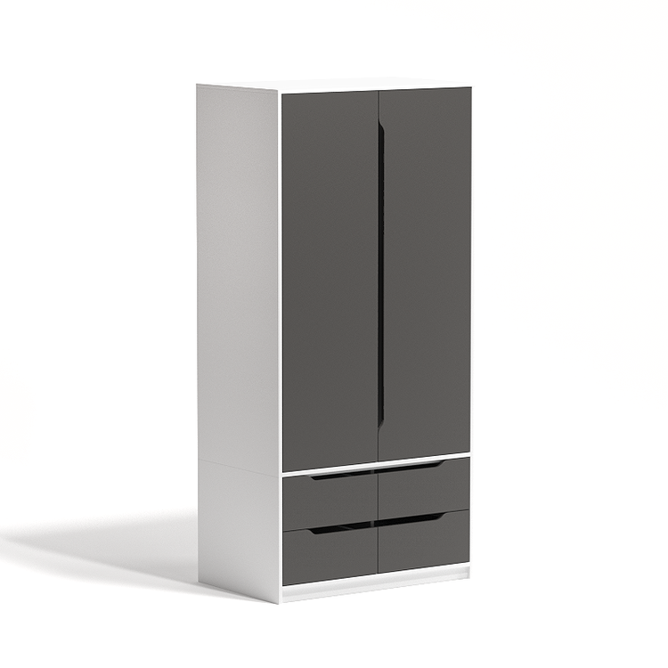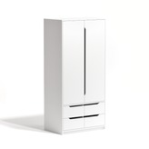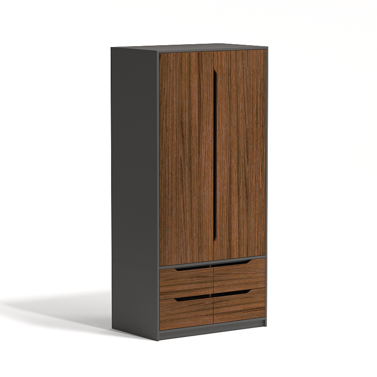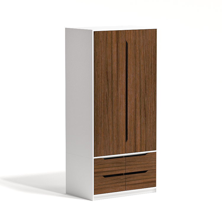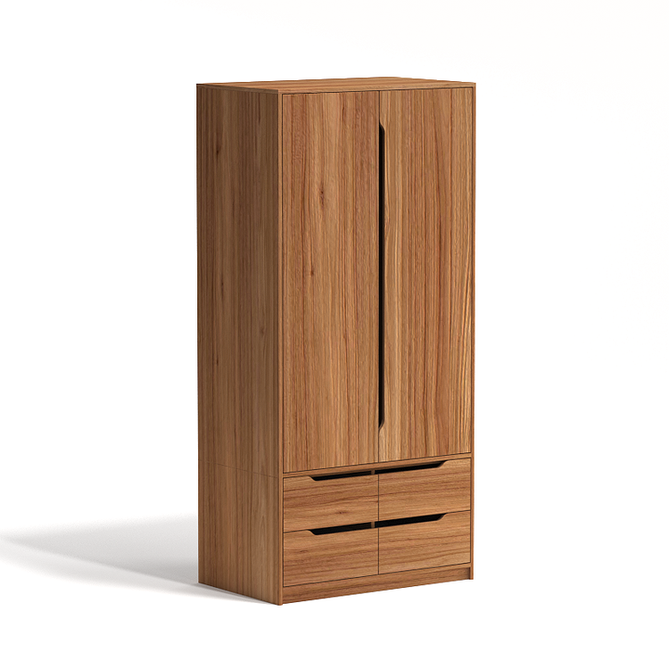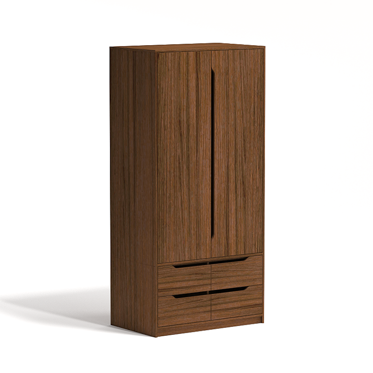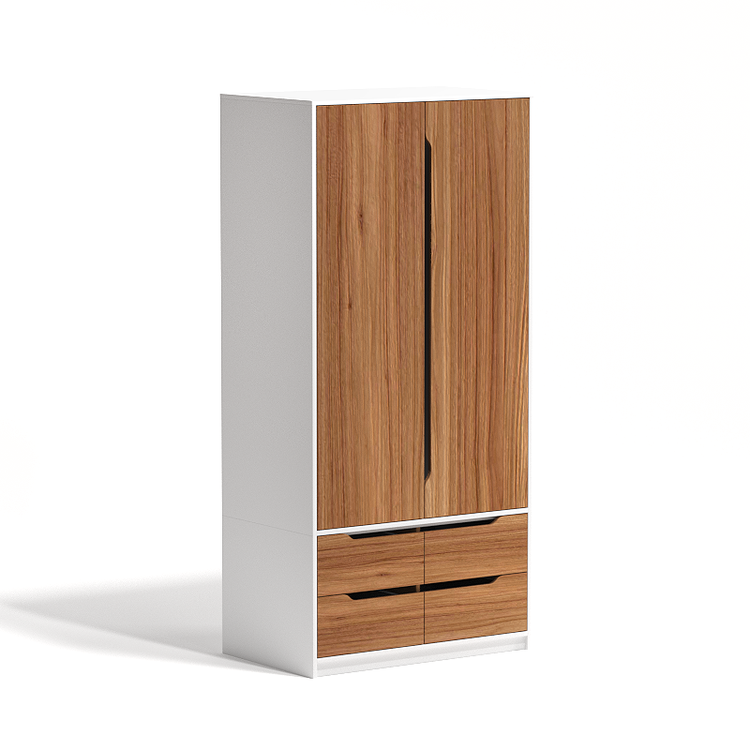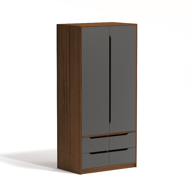 این کمد دو تیکه کشودار در دو جنس قابل سفارش است: امدیاف درجه ۱ و نئوپان ملامینه
